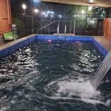 Посуточно сдаётся крытый подогреваемый 11 м. бассейн с гидромассажем и водопадом "Кобра", на шейно-воротниковую зону. Обогреваемое помещение у бассейна 500 м. В нём располагаются мангал с шампурами и решётками и 3 зоны отдыха. Тренажёры, шезлонги, телевизоры, столы со стульями и диваны с креслами, колонка с микрофонами. Вы сможете великолепно расслабиться и чудесно отдохнуть. Отдельно дом в огромном саду. В доме две изолированные комнаты. Большая ванная комната 25 м. и кухня. Тихо и уютно.