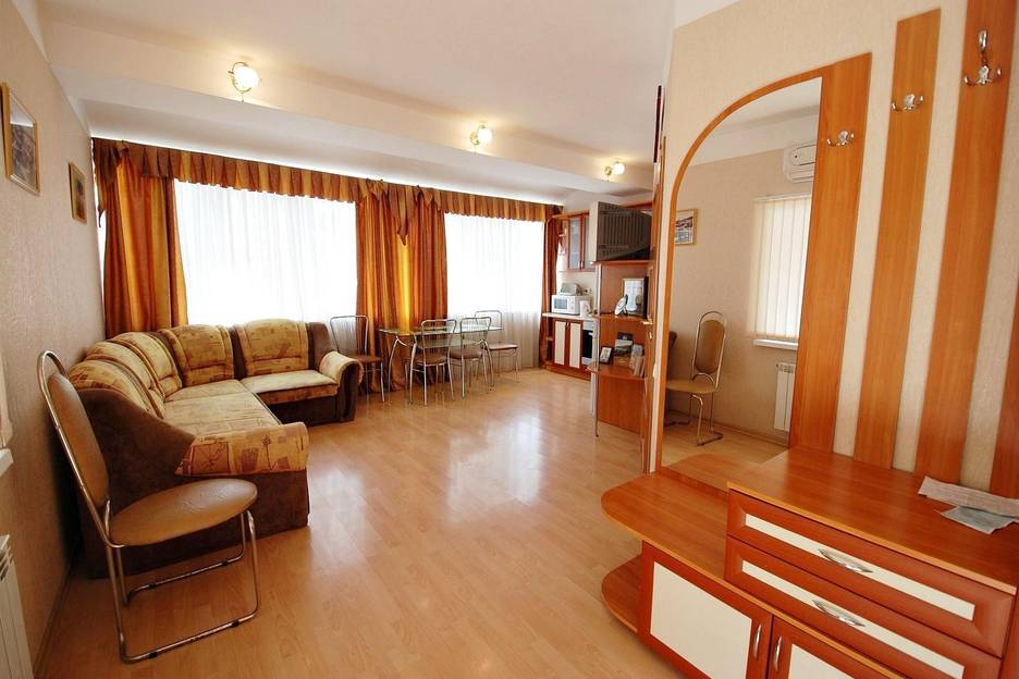 В каждой квартире: оборудованная кухня (холодильник, плита, духовка, микроволновка, чайник, посуда), сан. узел (душ. кабина), стир. ма1на-автомат, гор. /хол. вода круглосуточно, кондиционер, кабельное ТВ, Wi-Fi, утюг, фен, постельное белье.
