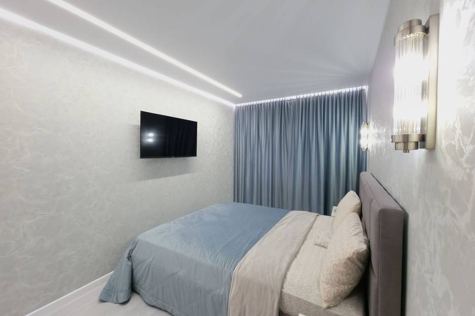 1 спальня с двухспальной кроватью (180*200) в зале раздвижной диван (180*200)