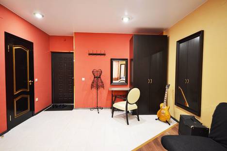 • Кованная винтажная 2х спальная кровать (1. 6м-2м), ортопедический матрац, выдвижной диван ikea (1. 6м-2м), плотные темного цвета шторы, гардеробный шкаф, старинная швейная машинка в виде туалетного столика, кожаный стул и огромные зеркала.