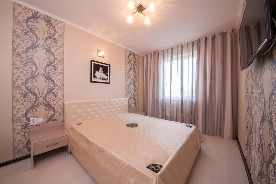 Замечательный вариант для семьи или небольшой компании. В квартире есть все для комфортного проживания, в каждой комнате и на кухне огромная ТВ-плазма. Есть вместительный шкаф, бесплатный высокоскоростной интернет WiFi, цифровое ТВ, стиральная машина, утюг, гладильная доска, сушилка. Полностью оборудованная кухня (холодильник, микроволновая печь, плита, эл. чайник, обеденный стол, посуда для приготовления и принятия пищи на 6-7 человек: кастрюли, сковородки, столовые и чайные приборы, бокалы, стопки, стаканы)