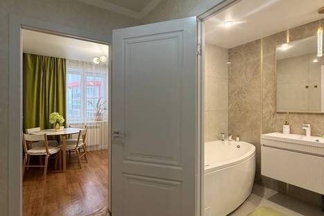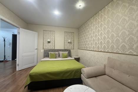 Двуспальная кровать, диван кровать, журнальный столик, телевизор, утюг, гладильная доска, безлимитный беспроводной интернет, качественное постельное белье и большие махровые полотенца. На кухне есть гарнитур с обеденной зоной и вся кухонная техника, посуда. В ванной имеется стиральная машина автомат. В квартире по домашнему уютно и чисто. Вас приятно порадуют маленькие, но приятные мелочи - чай, кофе.