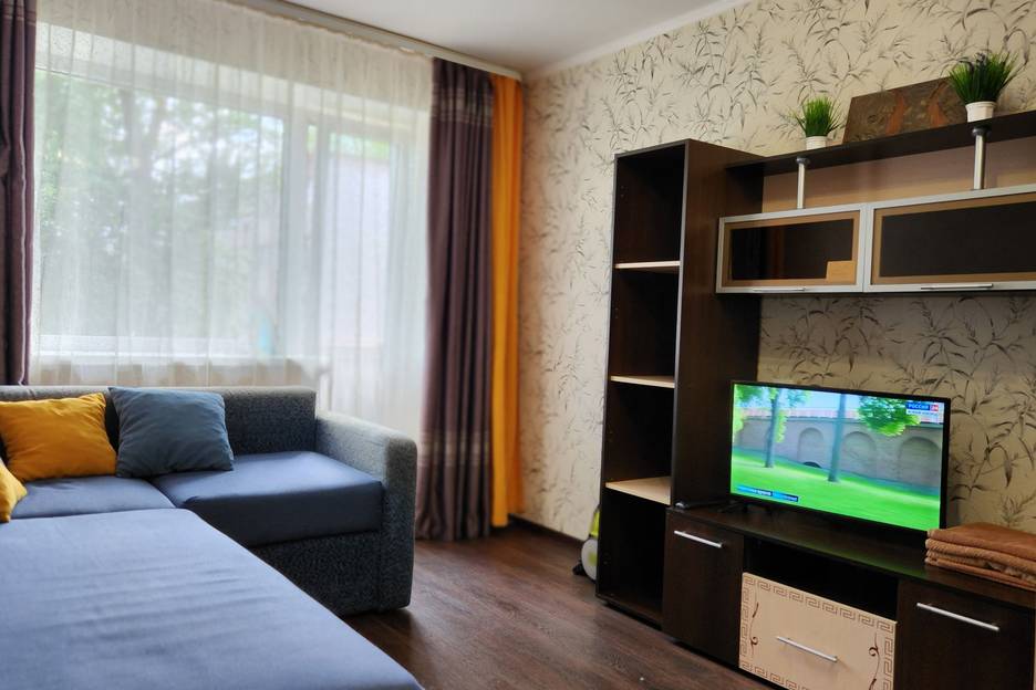 Уютная 1 к квартира с отличным ремонтом, есть все необходимое: двухспальная кровать и двухспальный диван, холодильник, Т В, Wi-Fi, эл. чайник, посуда, постельное белье, полотенца, утюг, фен.