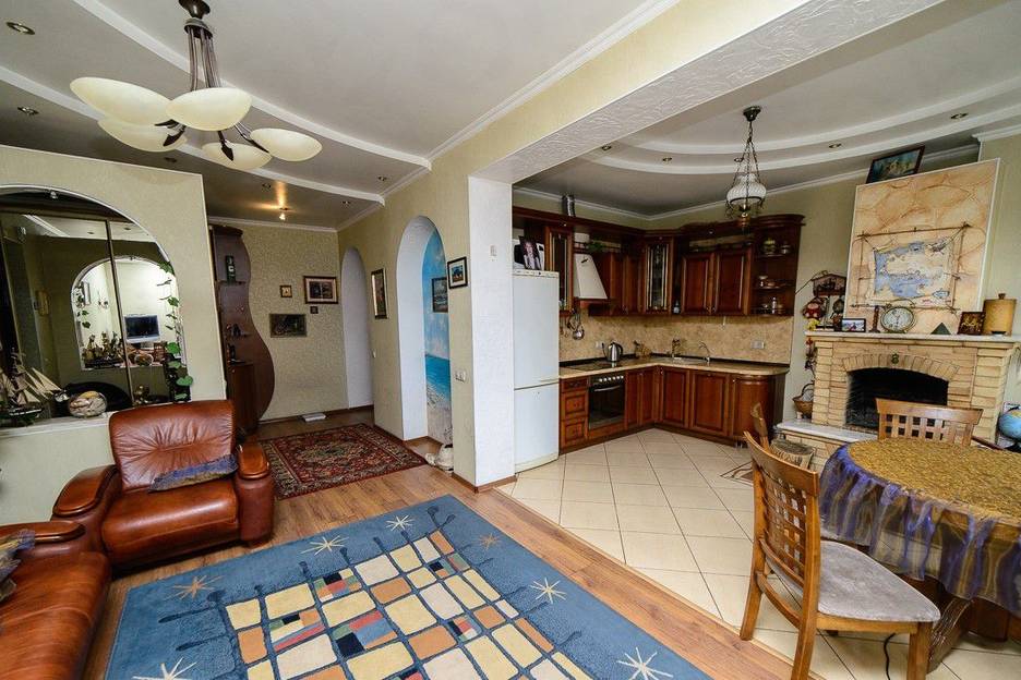 Большая кухня гостинная с дровяным камином и зоной отдыха дает возможности провести незабываемые вечера у камина. Спальня с огромной кроватью располагает к полноценному отдыху.
