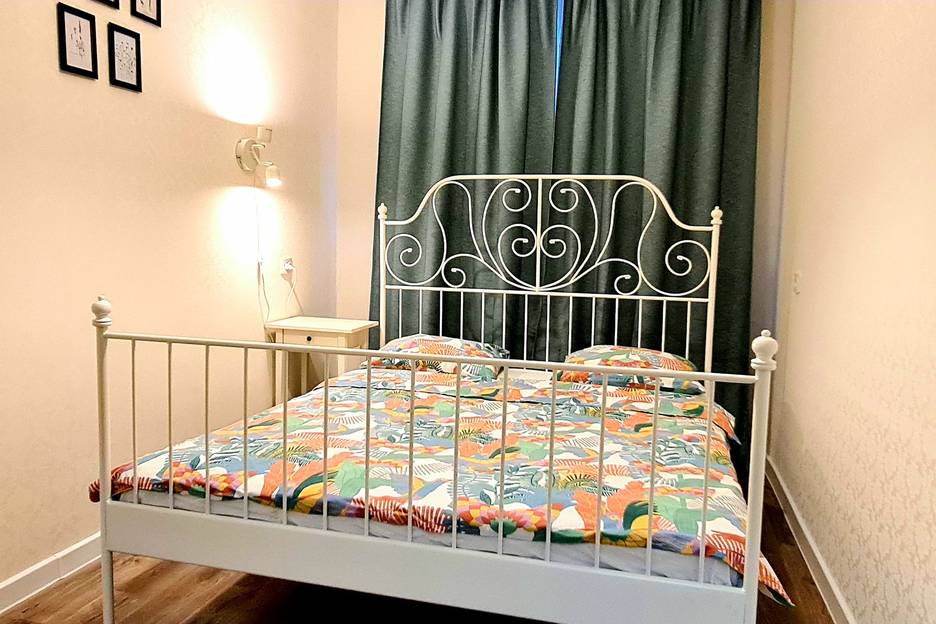 Квартира с современным ремонтом, чистая, теплая, уютная. Укомплектована всей необходимой бытовой техникой, полным набором посуды, диваном, креслом - кроватью Икеа, двуспальной кроватью с новым ортопедическим матрасом и постельным бельем.