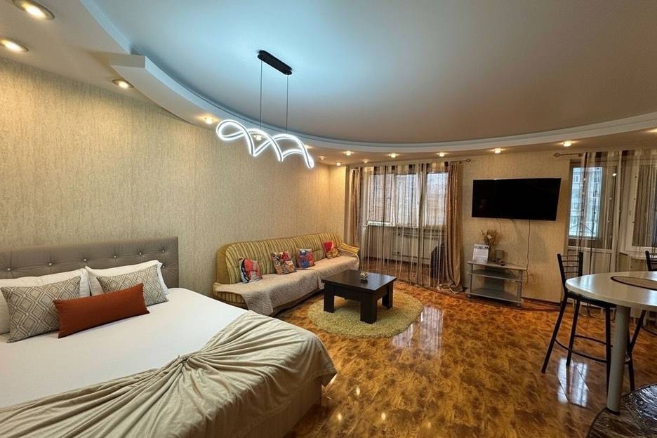 Сдается уютная просторная студия в центре города. Удачное расположение дома между Быхановым садом и Верхним парком,отличным местом для прогулок и спорта!Кирпичный дом с видеонаблюдением,дом расположен вдали от дороги.Полностью мебелированная,двухспальная кровать,кухонный гарнитур с барной стойкой,встроенная плита и духовой шкаф Kuppersbusch,смарт тв,стиральная машина,микроволновая печь,электрич.чайник,фен,утюг,гладильная доска и прочее.Кухня полностью оснащена всей необходимой посудой для приготовления еды.Есть балкон.Большая ванна с джакузи.Постельное белье,полотенца,предметы личной гигиены,чай,кофе,сахар.WI-FI-безлимитный интернет и смарт TV.Уборка проводится после каждого гостя!