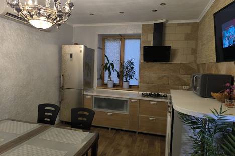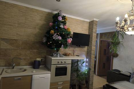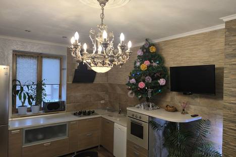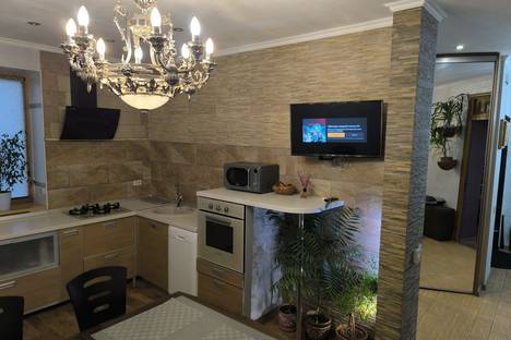 В серебряной гостиной стильный диван с подушками-пуфами, стеклянный обеденный стол в деревянном обрамлении, цифровое телевидение, телевизор с плоским экраном, бесплатный WI FI, полноценная кухня со встроенной варочной панелью, духовым шкафом, посудомоечной машинкой, холодильником, кондиционером, СВЧ. Гостиную украшают живые цветы и картины, вертикальное и горизонтальное освещение. Зеркальный холл с датчиком движения на входе с банкеткой украшен фреской "Венеция". Мозаичная ванная комната с окном оборудована сантехникой с инсталляцией, стиральной машинкой. В апартаментах поквартирное отопление, всегда горячая вода. Сиреневая спальня оснащена спальным гарнитуром:кровать с прикроватными тумбочками, туалетный столик и шкаф-гардероб; телевизором с плоским экраном (спутниковое телевидение). В золотой спальне двуспальная кровать, шкаф-гардероб, стеклянный компьютерный стол с ПК, рабочее кресло.