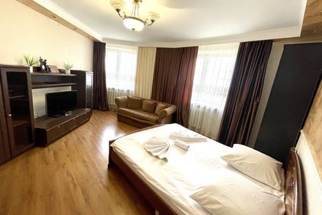 Описание КВАРТИРЫ от «Flats-Line» в Брянске по ул. Красноармейская, 100. ✔ Однокомнатная квартира с современным ремонтом на 12 этаже с видом на центр города, установлена кухня с набором посуды, встроенной техникой. СПАЛЬНЫЕ МЕСТА: 2 (двуспальная кровать). Обратите пожалуйста внимание, что диван изображенный на фото не раскладывается.