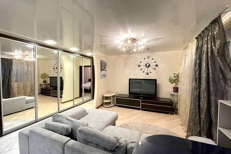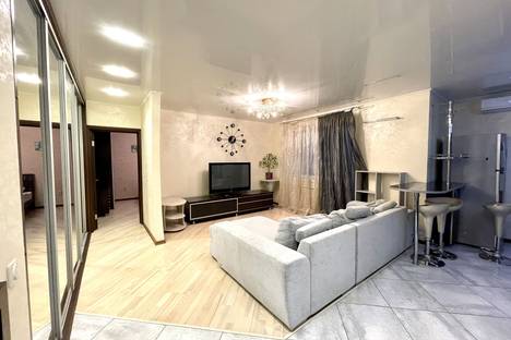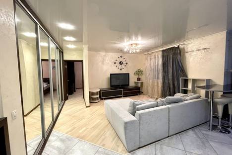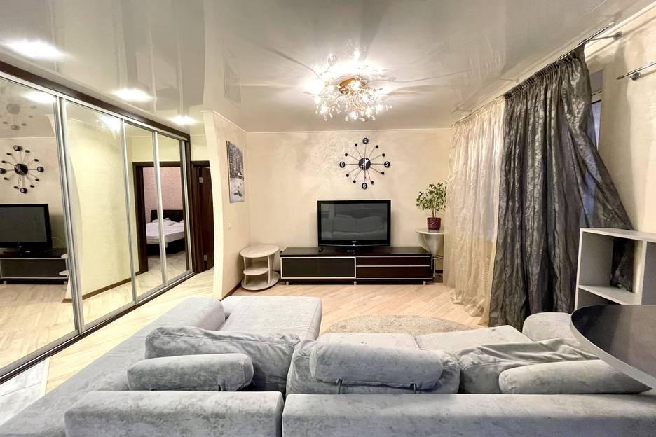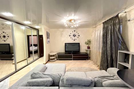 Описание квартиры от «Flats-Line» в Брянске по ул. Красноармейская, 100 Двухкомнатная квартира с потрясающим стильным ремонтом, из высококачественных материалов, установлена кухня с набором посуды, встроенной техникой. Обратите внимание, что данная квартира сдается только для двоих гостей (диван не раскладывается). ЖК телевизор, шкаф-купе в прихожей. ✔ Большая угловая ванна оснащена джакузи