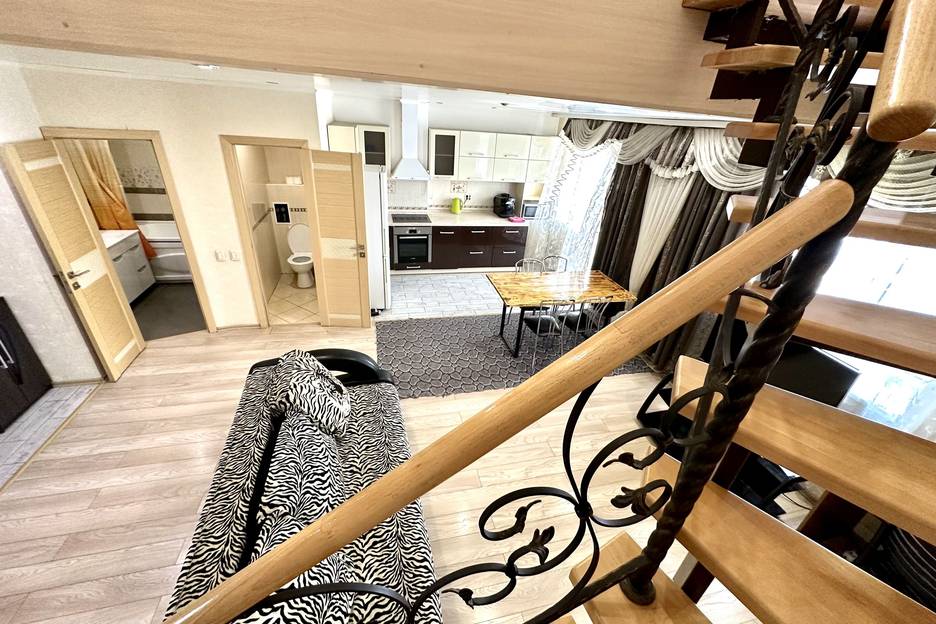 В целом неплохая квартира, немного уставшая но это не принципиально. Но. В комнатах на втором уровне нет окон! Соответственно, вентиляции нет и воздух ужасный. Точнее они есть в потолке, но не открываются и утром оттуда прямо на кровати идет солнечный свет, завесить ничем нельзя. Если ехать в эту квартиру, то только рассчитывать на нижний уровень, там все относительно неплохо. Бойлер только на первом уровне, маленький, хватало чтобы быстро помыться одному человеку, дальше надо ждать чтобы вода нагрелась.