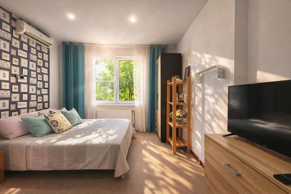 4 СПАЛЬНЫХ МЕСТА. Двуспальная кровать и раскладной диван.