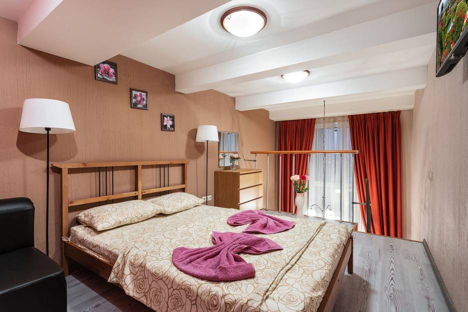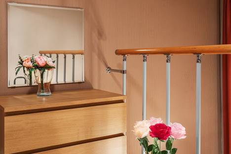 Апартаменты 2ух этажные( на первом кухня-гостиная , на втором спальня, санузел и гардеробная.)