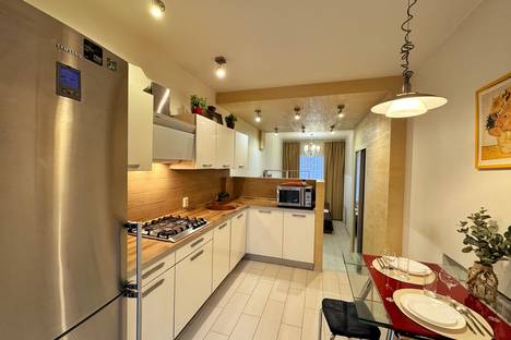 Расположение квартиры на все 150%, в историческом центре города, рядом много достопримечательных мест, театр, кафешки. Теперь о не очень хорошем: - Квартира больше подходит для молодёжи, подъем по ступенькам в кухню и спуск в ванную это жесть; - спать на кожаных диванах это не для слабонервных; - в комнате совмещенной с кухней шум работы холодильника в другой комнате постоянный гул не понятно от куда ( кажется из соседней квартиры). Но в общем можно приспособиться, главное прогулки вдоль набережной и музеи. В квартире чисто, все прибрано, вполне достойно.