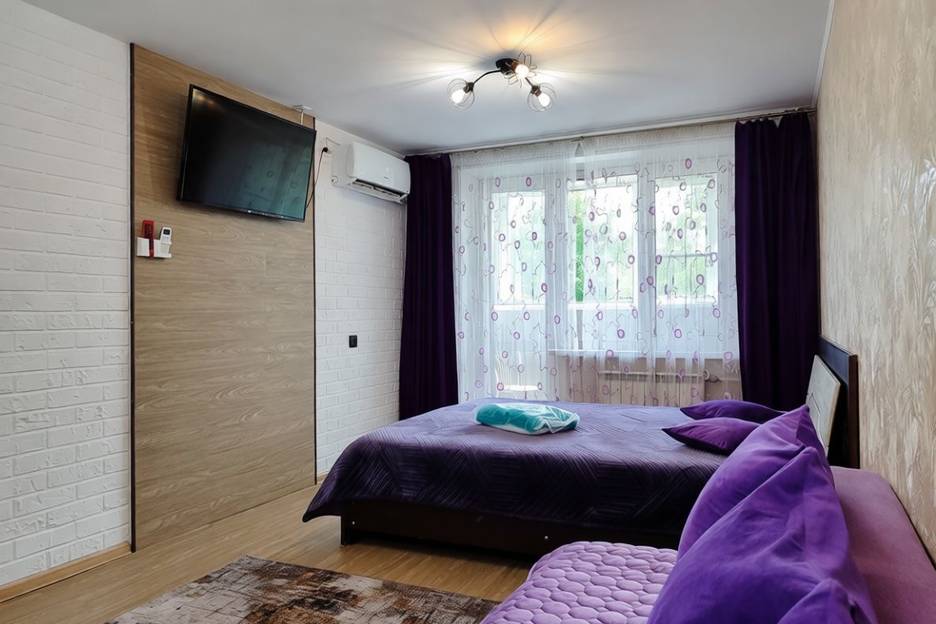 В квартире вас ждет большая двуспальная кровать и удобный раскладной диван-кровать. Всегда свежее белоснежное постельное бельё, мягкие полотенца, кабельное ТВ, Wi-Fi, гладильные принадлежности и кондиционер.