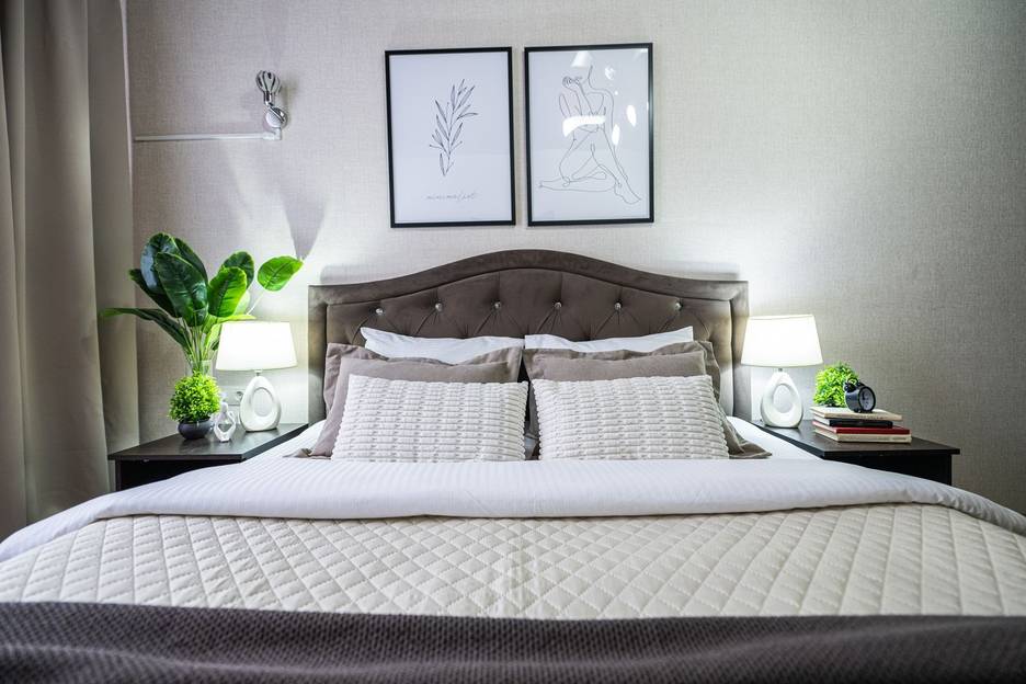 ✔ В изумительной спальне роскошная двуспальная кровать с каретной стяжкой, с ортопедическим матрасом - обеспечит безмятежный сон. Плотные портьеры способствуют полной светоизоляции. Для хранения вещей предназначен вместительный угловой шкаф - купе с зеркальной створкой. Красивые светильники на прикроватных тумбах создают атмосферу покоя и уюта перед сном. ЖК-телевизор поможет скрасить досуг.