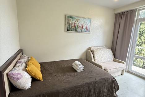 Уютная 1-комнатная квартира в ЖК «Лето» в Адлере с самым лучшим видом — на парк «Южные культуры»! Свой балкон, чтобы наслаждаться этой красотой. Современный ремонт, вся техника, Wi-Fi, кондиционер. Закрытая территория, парковка. До моря — 10 мин.