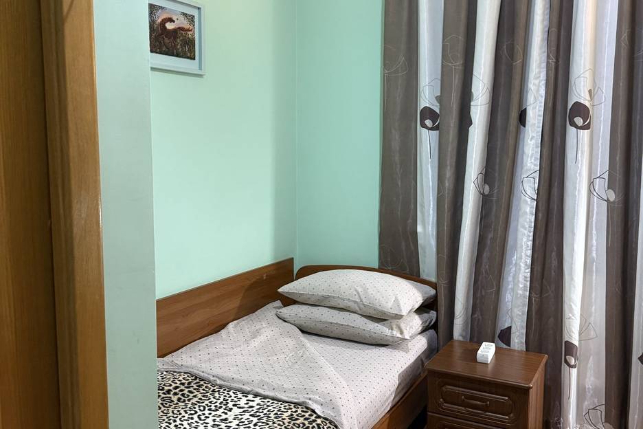 Уютный компактный номер для одного гостя. В номере: удобная односпальная кровать, собственный санузел (душ и туалет), телевизор, кондиционер, Wi-Fi. Чисто, спокойно, всё необходимое для комфортного отдыха или ночёвки. Подходит для командировок и коротких заездов