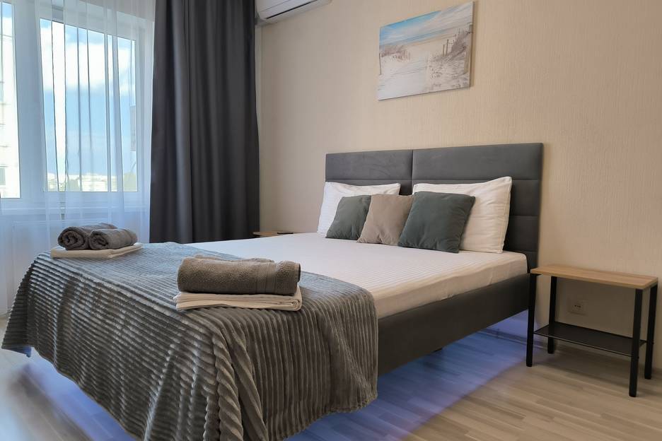 Новый Херсонес. Дойти до пляжа "Песочный" можно неспешным шагом за 25 минут. Нас это вполне устроило, т. к по пути можно приобрести необходимые продукты и полюбоваться городом. Пляж уютный, бесплатный, есть раздевалки, тренажёры, душ, туалет, можно взять напрокат лежаки, есть небольшое кафе,чисто). Чуть дальше расположен пляж имени Анны Ахматовой. Это фактически парк с ухоженной территорией, берег здесь каменистый, что на любителя. По времени заселения и отъезда вопросы тоже успешно решаются с хозяином, за что ему отдельное спасибо. Претензий к условиям проживания у нас не было, надеемся, что в следующем году снова воспользуемся этим жильём. Рекомендуем квартиру для проживания активным отдыхающим. Благодарим Михаила за предоставленные условия!