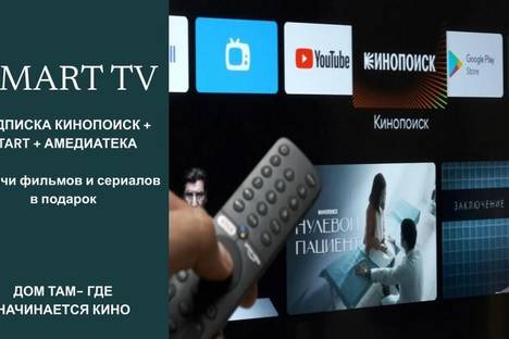 - большой ЖК телевизор 43" со СМАРТ ТВ и подписка Кинопоиск + СТАРТ + Амедиатека!