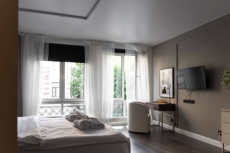 Новый дом бизнес класса. Уютные, новые и просторные апартаменты категории «Deluxe» в самом сердце Санкт-Петербурга. К вашим услугам собственная кухня, бесплатный Wi-Fi, ванная комната с феном, гардеробная, просторная спальня со сдвоенной кроватью «big size», панорамные окна в пол. Также, в числе удобств микроволновая печь, плита, холодильник, чайник, кофеварка, посудомоечная машина, стиральная машина, посуда, телевизор, вентилятор, утюг, обогреватель. Все создано для Вашего комфорта и отдыха.