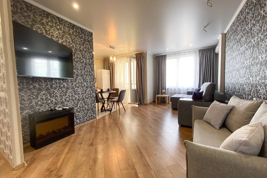 Прекрасный вариант для романтического вечера или возможности сосредоточиться на работе. В зоне гостиной камин для тёплых и уютных вечеров.