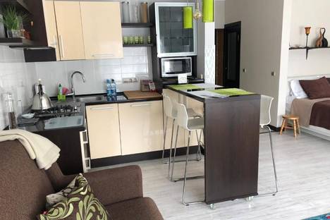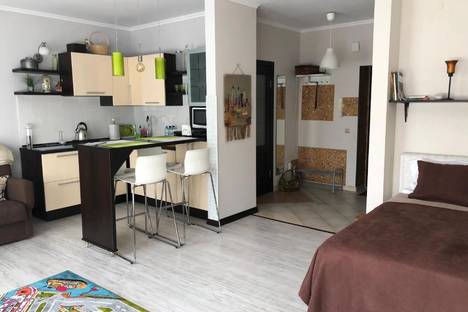 Светлая, просторная студия в самом центре Зеленоградска с видом на курортный проспект, с гардеробной комнатой и удобной кроватью.