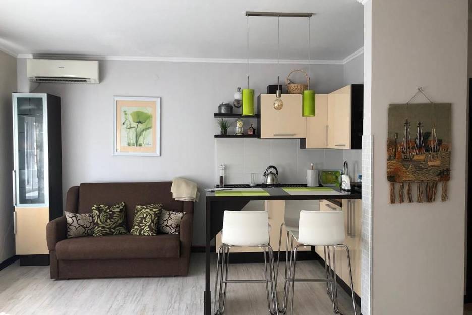В 2 минутах от моря, рынка и вокзала. Повышенная шумоизоляция окон, кондиционер.