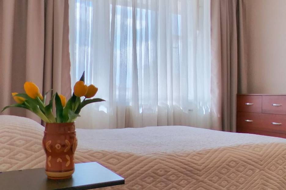 Квартира на последнем этаже, окна во двор. Шум города не слышен. Есть вся бытовая техника: телевизор СМАРТ, интернет, вай-фай, холодильник, электрическая плита, микроволновка, фен, утюг, в период отключения горячей воды есть бойлер. Все для приготовления пищи: сковородки, кастрюли, посуда, бокалы.