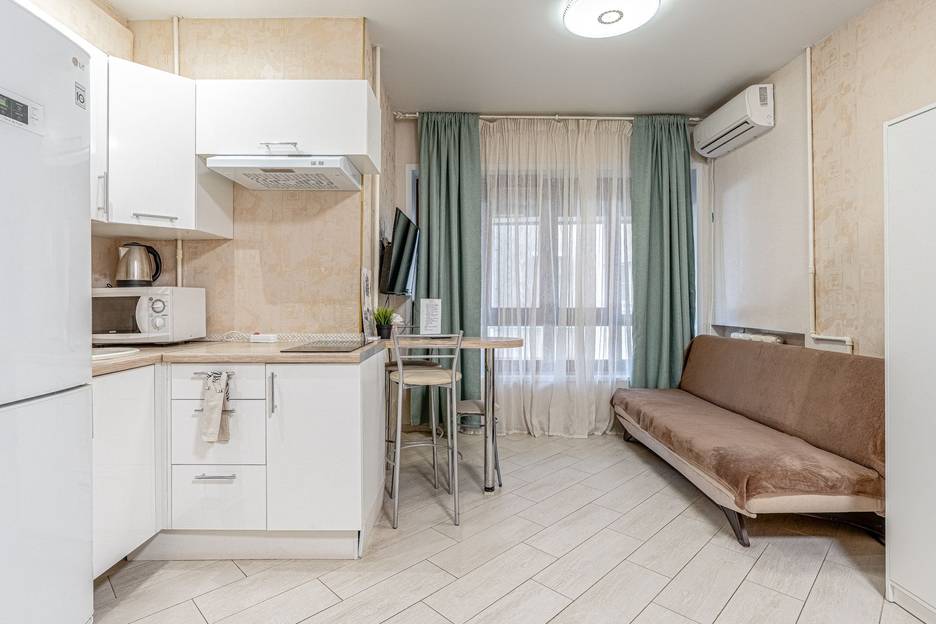 В целом квартира оборудована всем необходимым для жизни, все из Икеи и очень функциональное, можно приготовить и разогреть еду, удобная кровать.