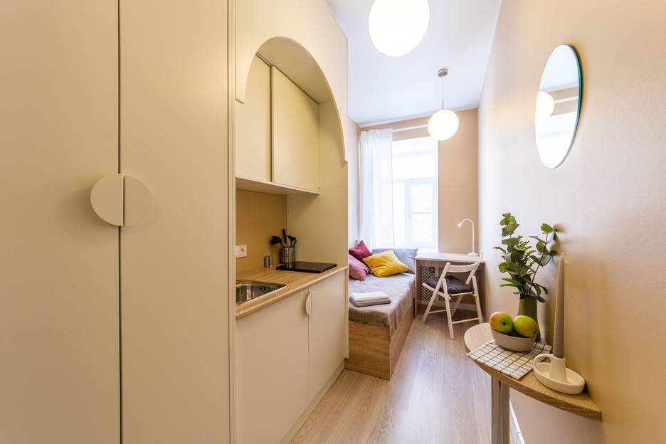 В каждой из комнат есть индивидуальная полноценная кухня, вместительный шкаф, рабочее место и удобная кровать.