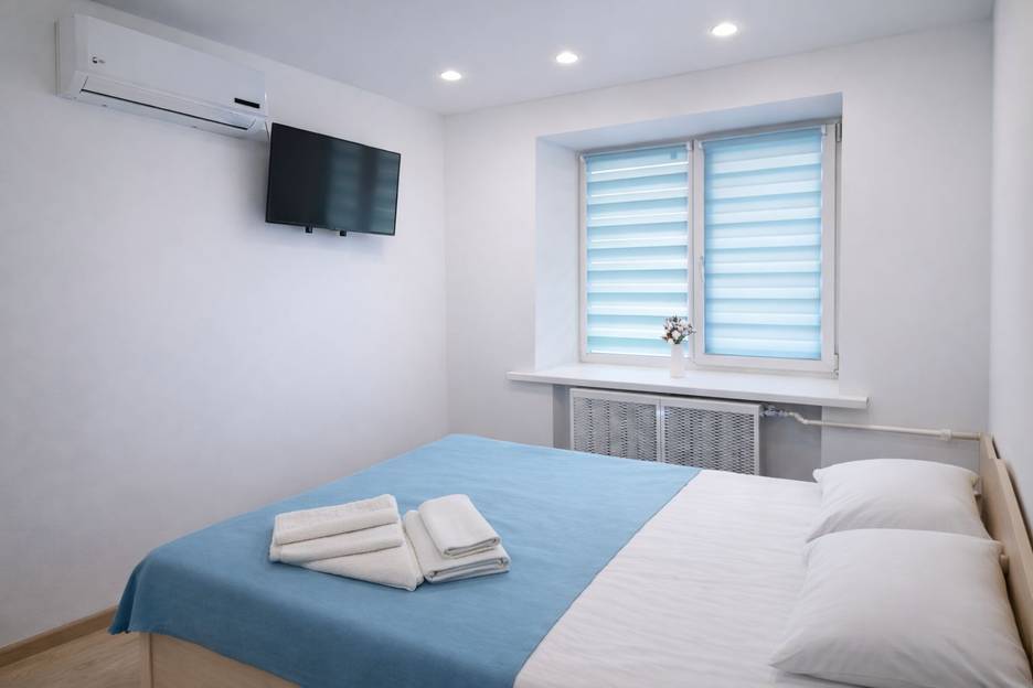 Место расположения удобное от достопримечательностей, вокзала. Недалеко столовая, Пятёрочка. Комната маленькая, душная. Расстановка мебели и техники неудобная. Санузел крошечный, всё впритык. Но всё работает исправно. Подоконник, пледик и шторы грязные. Ручка окна сломана, окно полностью не закрывается. Мебель пошарпанная. Водогрей шумит. Запах старой канализации чувстсвуется. Одно полуторное одеяло на двоих. Пледик детский, можно только ноги прикрыть. Для проживания одного гостя приемлемо. Двоим места мало.