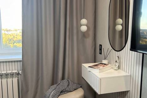 Очень чистая и уютная квартира. Красивый современный дизайн. Все продумано до мелочей, порадовало наличие посудомойки и средств гигиены (даже диски и ватные палочки были). Потрясающий панорамный вид из окна, очень тихое место. Рядом находится парк. Во дворе есть магазин со всем необходимым. Такси вызвать не проблема - 10 минут и ты в центре. Отзывчивая хозяйка, с заселением и оплатой никаких проблем. Я люблю жить не в центре города, поэтому для меня это был оптимальный выбор. Рекомендую