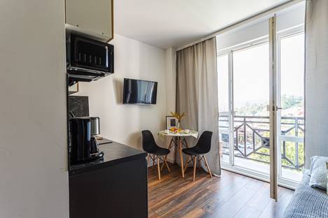 Стильная квартира-студия с шикарным видом на море. Рассчитана на заселение до 2-х гостей.