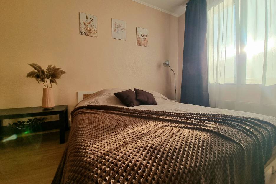 Из плюсов отмечаю чистоту помещения и неплохое постельное белье. Квартира расположена не в центре города, но так как присутствует хорошая транспортная развязка, то у меня не было проблем с логистикой моих маршрутов.