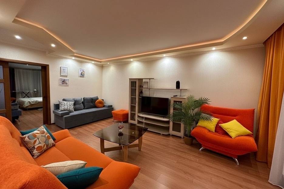 Кирпичный дом.В квартире выполнен современный, качественный ремонт. Полностью мебелированная, четыре отдельных спальных места (двухспальная кровать, три удобных дивана)