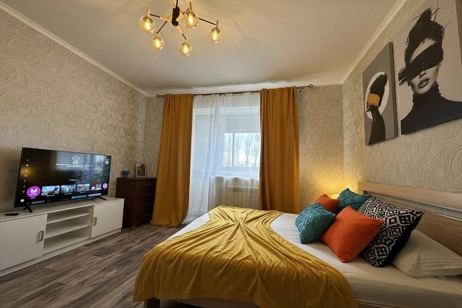 В квартире выполнен современный ремонт,мебелированная,двухспальная кровать 2*160,удобный диван, смарт тв,стиральная машина,микроволновая печь,электрич.чайник,фен,утюг,гладильная доска и прочее.Кухня полностью оснащена всей необходимой посудой для приготовления еды.Есть балкон.Постельное белье,полотенца,предметы личной гигиены,чай,сахар.WI-FI-безлимитный интернет и кабельное TV.Уборка проводится после каждого гостя!