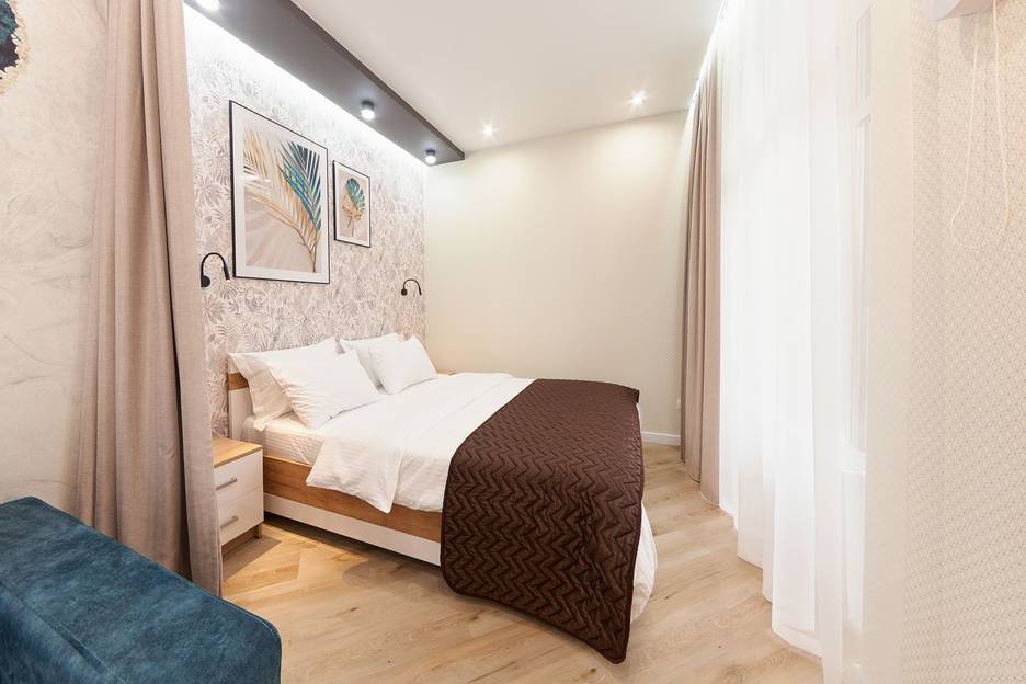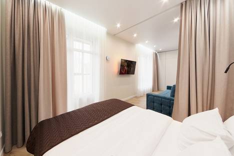 Идеально подойдут для одного, двоих либо троих командированных или для семьи с детьми (три отдельных спальных места – 2 + 2 + 2). В наших апартаментах только кровати с удобными ортопедическим матрасами. Постельное белье высокого качества из страйп-сатина. Два больших телевизора с IP-телевидением в каждой комнате, Wi-Fi. Есть абсолютно все для комфортного проживания, включая капсульную кофемашину. На первом этаже работают магазины, Traveler’s Coffee.