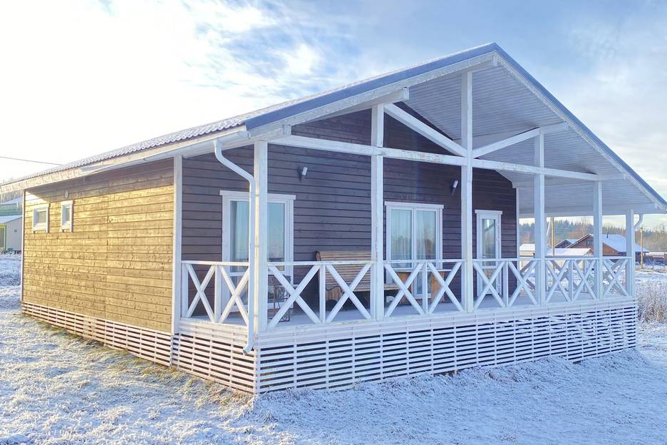 Коттедж находится в 77 км от Санкт-Петербурга и в 2 км от ближайшего склона.