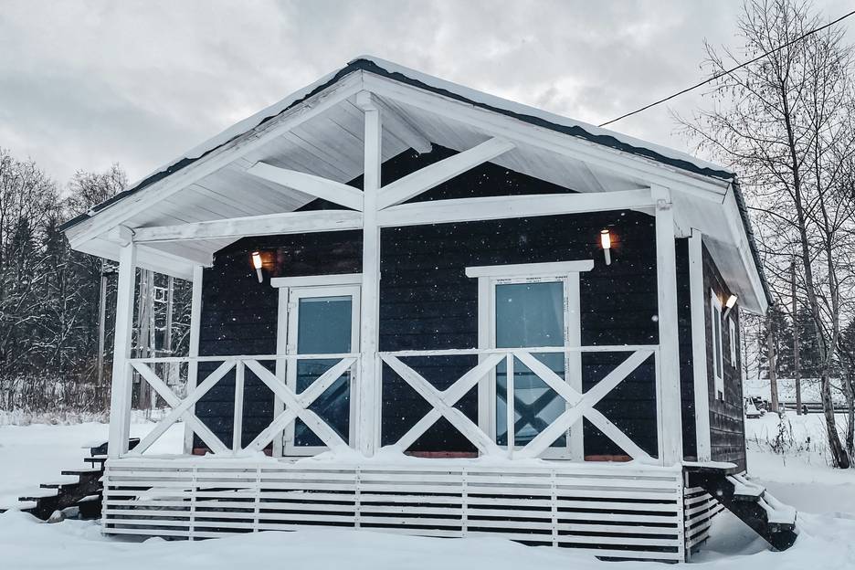 Коттедж находится в 77 км от Санкт-Петербурга и в 2 км от ближайшего склона.