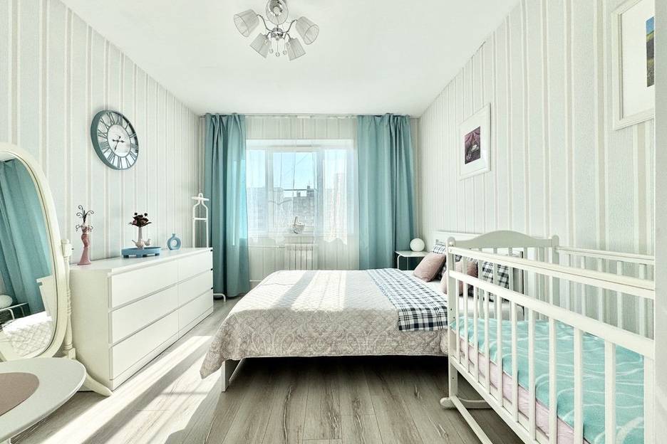 ☑️Спальня: Большая комфортная кровать, детская кроватка