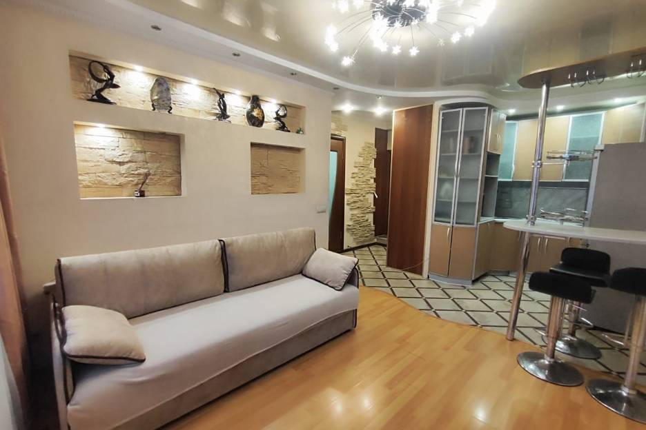 Сдаётся посуточно уютная, светлая квартира с красивым видом из окна на бухту Золотой рог. (одна комната совмещена с кухней)