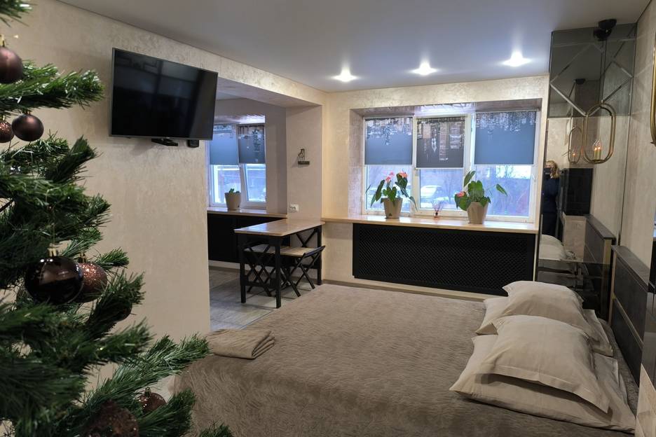Студия в центре города рядом с центральным рынком с дизайнерским ремонтом. Студия выполнена в нежных персиковых тонах, украшена каминной зоной, иммитирующей русскую печь. Вместительный и в то же время парящий стеклянно-зеркальный шкаф, украшенн арнаментом. Полноценная кухня со встроенной техникой с итальянским фасадами красива и практична. Деревянный стол с подстольем прекрасно сочетается с арнаментом шкафа. На деревянных широких подоконниках разместился комнатный цветник. Окна задекорированы жалюзями с фотопечатью города отраженного в реке. Просторная ванная комната с душевой зоной и стиральной машинкой окутывает вас теплом и уютом. В прихожей зона для верхней одежды обрамлена зеркальной рамой. Что создает ощущение простора. Верхний свет и боковые подсветки эффектно сочетаются с электрокамином.