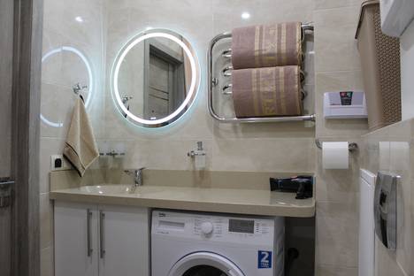 Санузел: фен, ванна, стиральная машина, зеркало с подсветкой, бойлер, электрический теплый пол