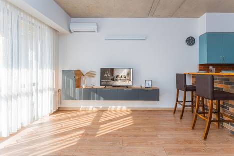 Это уютная и новая односпальная квартира на улице Кохбаци 16, в новом отремонтированном доме с круглосуточной охраной. Он расположен на 11 этаже здания, имеет красивый балкон с видом на город, Smart TV, Wi-Fi, уютную гостиную с диваном, кухню со всеми удобствами для приготовления пищи, спальню с двуспальной кроватью, ванную комнату с душевой кабиной. Также в квартире есть утюг, фен, постельное белье и полотенца.