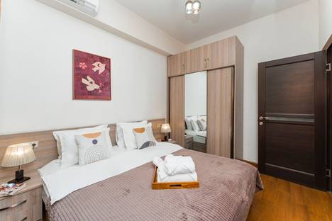 Квартира находится в центре города, рядом есть супермаркет, много кафе и ресторанов. В здании 2 лифта и круглосуточная охрана. Курить можно только на балконе.