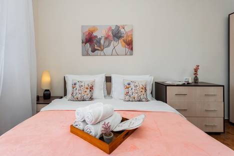 The apartment has 2 balconies, 1 bathroom, 1 bedroom, a sofa bed can accommodate 1 person. The building has 2 elevators, 24-hour security, central heating. The kitchen has an oven, stove, utensils, everything you need for cooking. You can smoke on the balconies, but inside the apartment smoking is not allowed.
