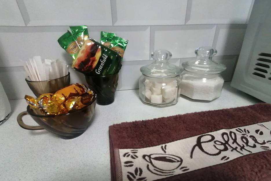 В квартире есть все необходимые мелочи для комфортного проживания: чай, кофе, сахар, соль, растительное масло, жид. мыло, стиральный порошок, туал. бумага , чистое постельное белье, комплект полотенец.