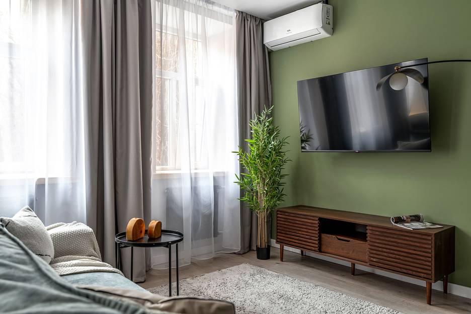Smart TV с большим экраном для уютных вечеров с фильмом после прогулки.
