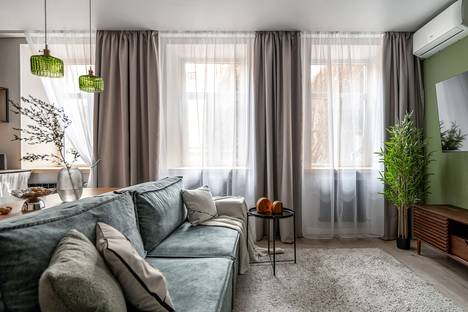 Двуспальный диван 160/200 см в гостиной — идеальное место для ещё двоих гостей. В апартаментах с комфортом разместится до 4 человек.