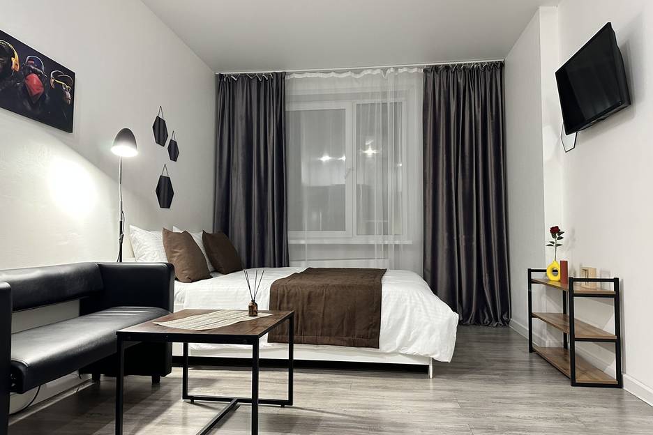 Современная, стильная студия, приветствую меня зовут Марина, и я приглашаю остановить выбор на наших апартаментах, и гарантирую, что Вы к нам обязательно вернетесь.